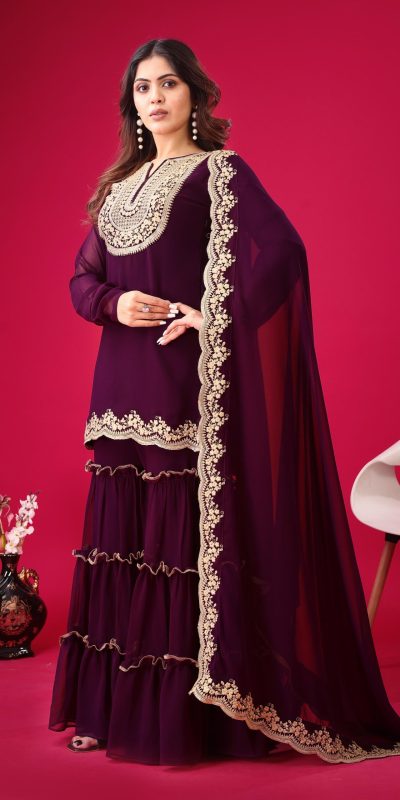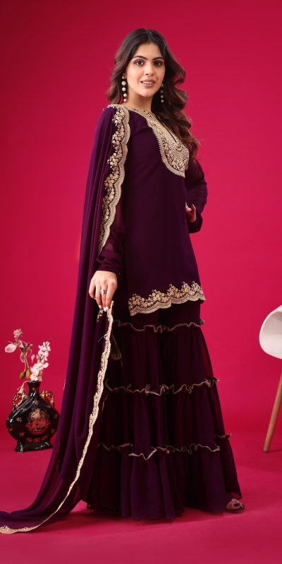| Fabrics | Top Fabric :Blooming Faux Georgette With Heavy Embroidery 3mm Sequence Thread Work With Full Sleeve Top Inner : Heavy Micro Cotton Top Size : Free Size Fully Stitched Ready To Wear Top Length : 31-32 inchPalazzo Fabrics : Blooming Faux Georgette With Elastic Full stitched Palazzo inner : Heavy Micro Cotton Length: 40-41 Inch fully stitched Dupatta Fabric : Blooming Faux Georgette With Embroidery 3mm Sequence Work With Lace Border |