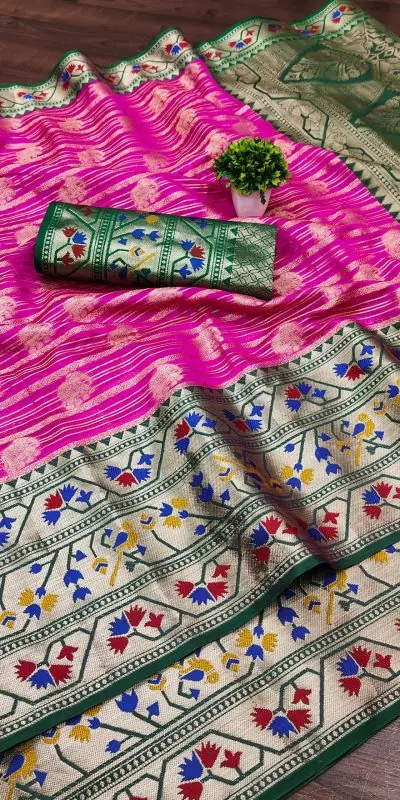 MB™️ 3263 Pink Color Pure Lichi Silk Gold Zari Weaving Saree Casual, Wedding, Party, Festival, Events, Etc. Expected Delivery 4-6 Working Days @1599/-