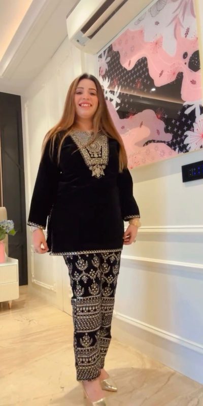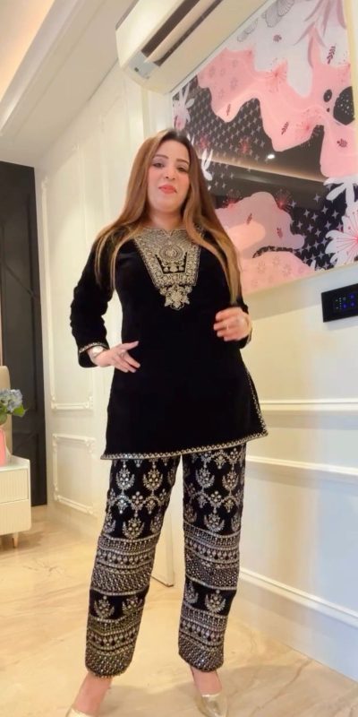 Inner : Micro Work. : Thread with Sequnce Stich. :Free Size Pent Fabric :- Viscos velvet Dupata Fabric : Butterfly net |