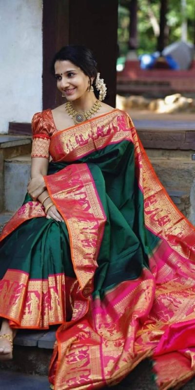 Majestic Green Color Soft Lichi Silk Jacquard All Over Saree