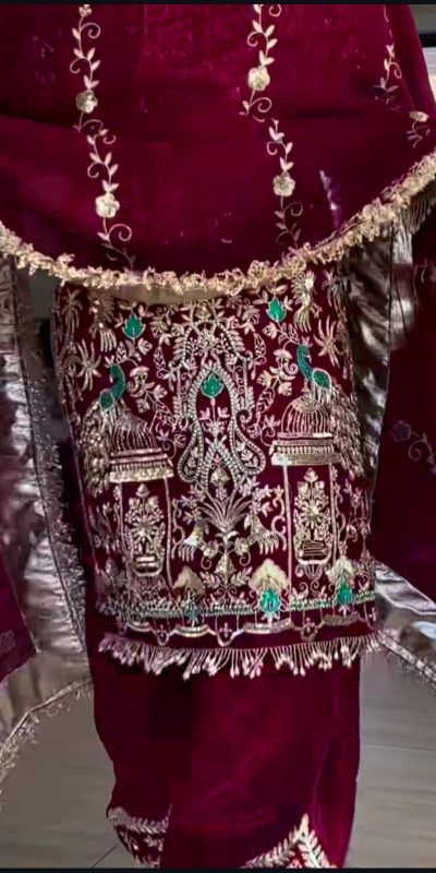 Maroon Natural Crep Embroidery Work Salwar Suit