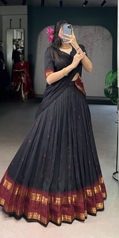 1 Lehenga :: 1 Blouse :: 1 Dupatta :: Drawstring with Zip |