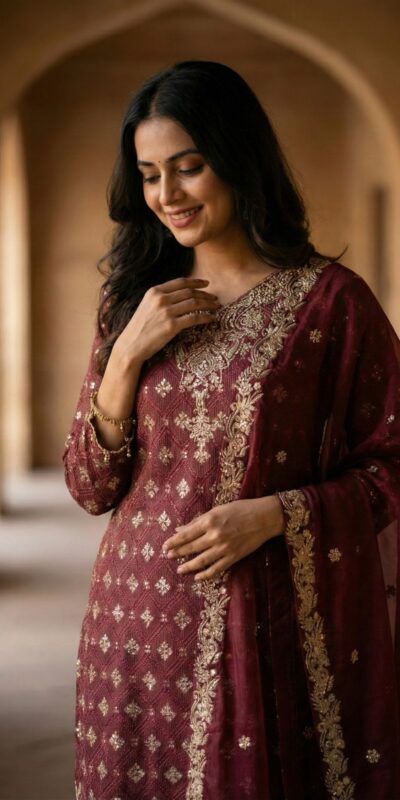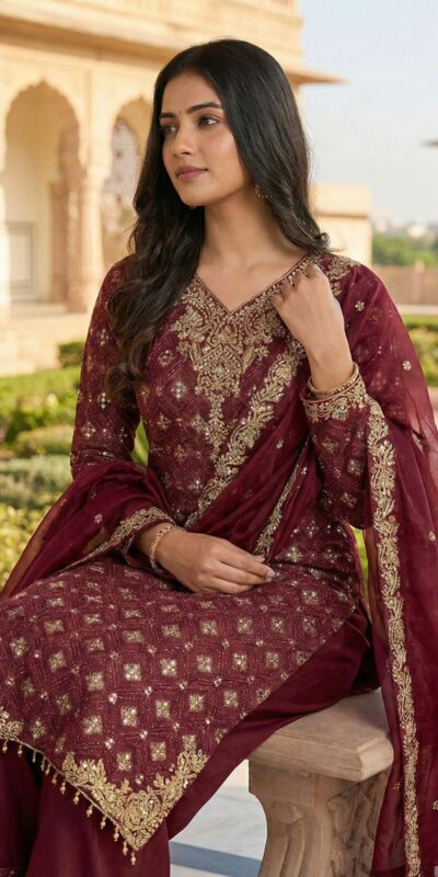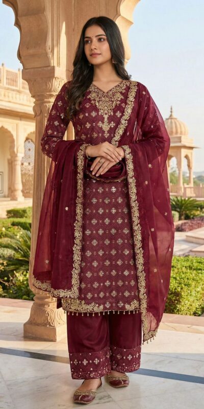 Maroon Pure Organza Silk Sequence Work Salwar Suit