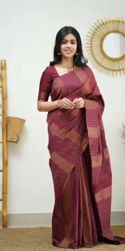 Maroon Soft Lichi Silk Rich Pallu Work Border Saree