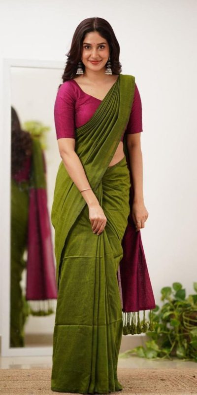 Mehandi Soft Lilian Slab Rich Pallu Saree