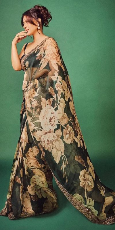| Fabrics | Fabric : Premium Georgette Work : Digital Print & Multi Sequence Lace Border On Saree Saree Length : 5.5 M Blouse :Mono Silk Type : Unstitched |
