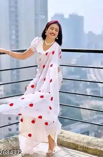 DDH LOVING White Color Georgette With Hart Gmathi Work Saree Events Casual, Wedding, Festive, Events Etc. Expected Delivery 4-6 Working Days @1499/-