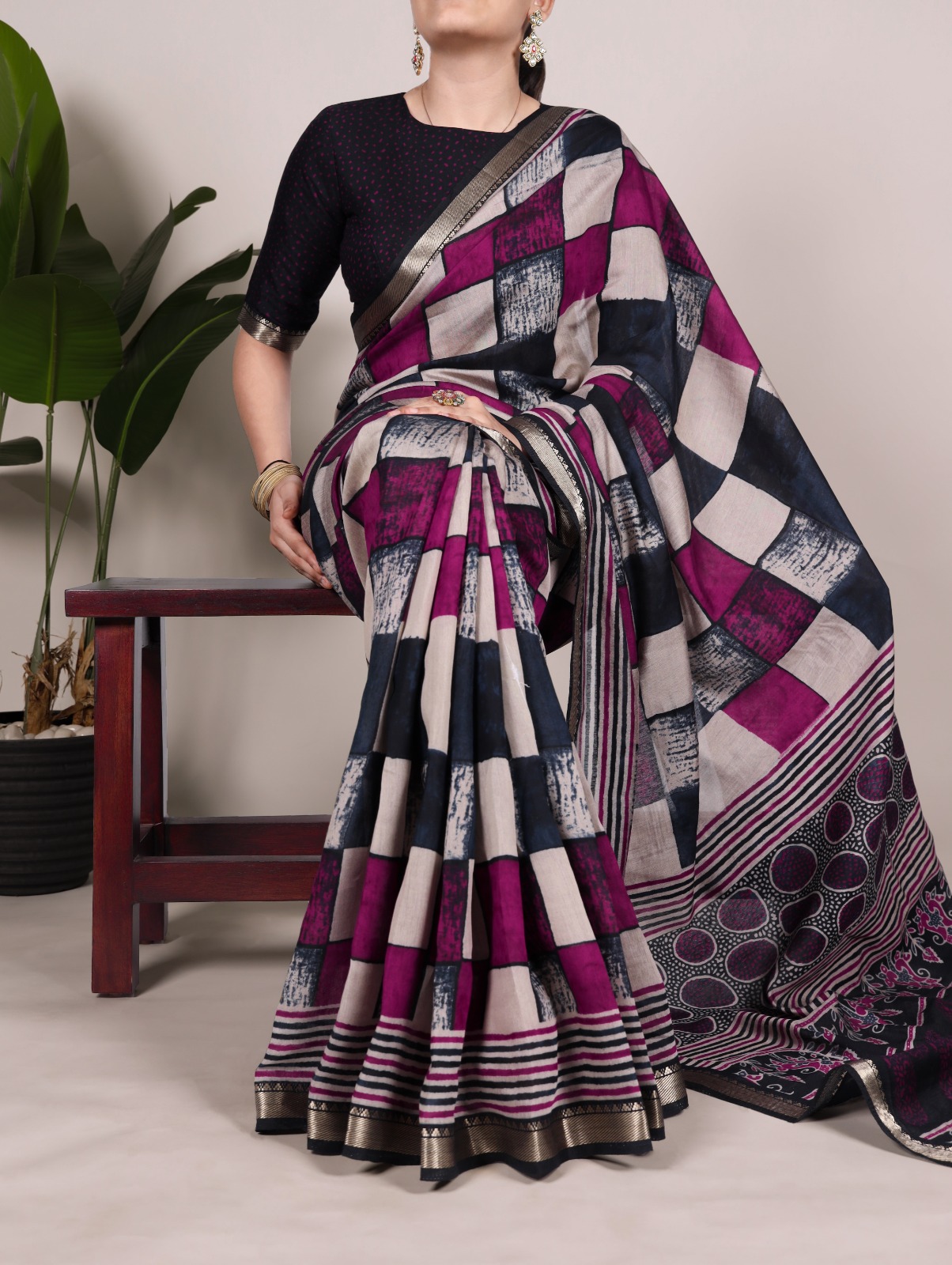 3. A remarkably comfortable saree with vibrant design work. The material stays soft even after washing, and the colors remain just as bright and eye-catching.
