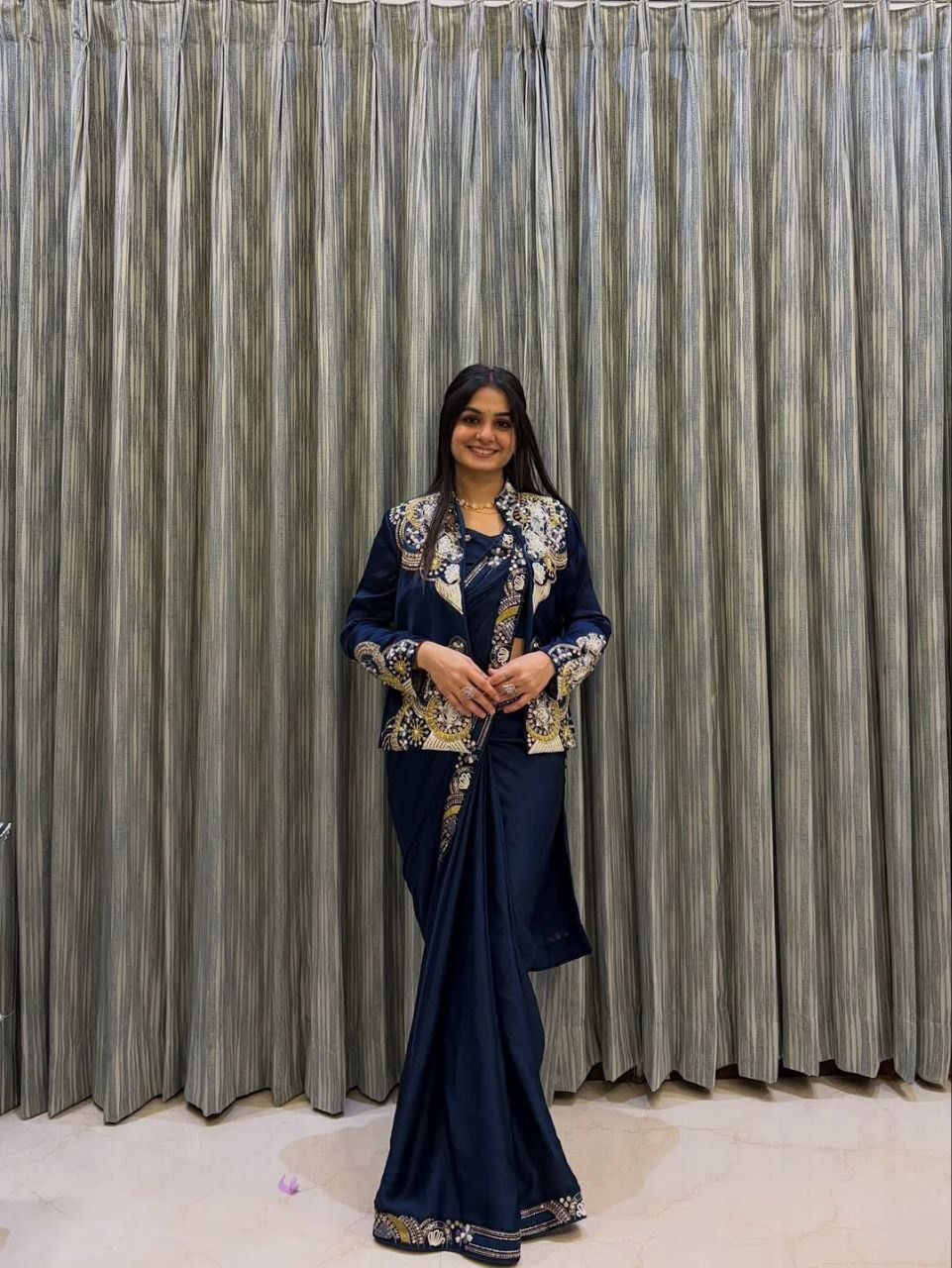 BB 60 Navy Blue Crap Silk Saree with Embroidery Work. Wedding, Party, Festive, Events Festive Deal ₹2099. Delivery 4-6 Working Days. Shop now. | Designer Sarees, Sarees, Bollywood Sarees, Creative Sarees, Embroidered Sarees, Ethnic Saree, Modern Digital sarees, Party Wear Sarees