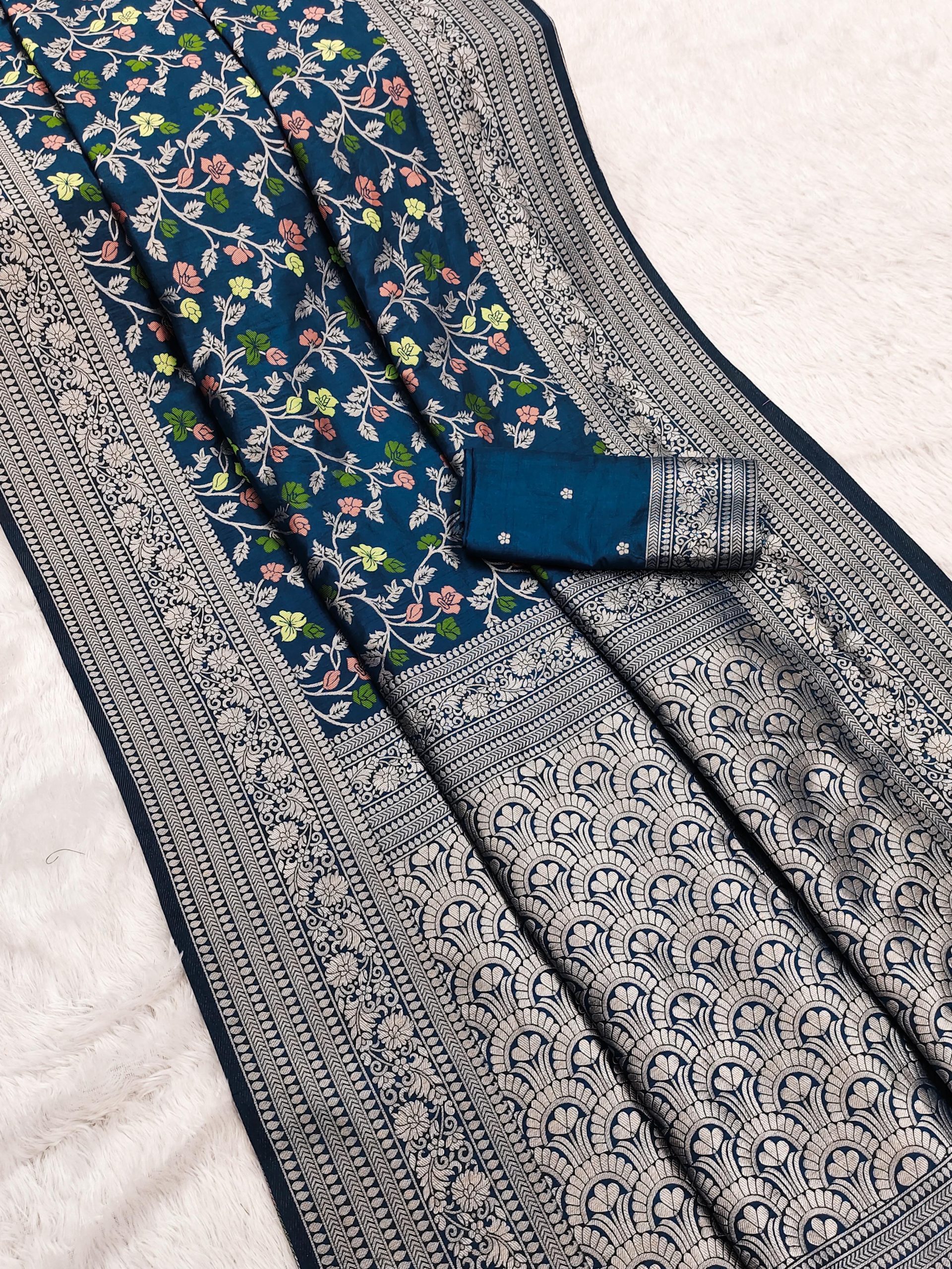Blouse :- Comes with a matching in solid featuring small woven motifs and a zari border.