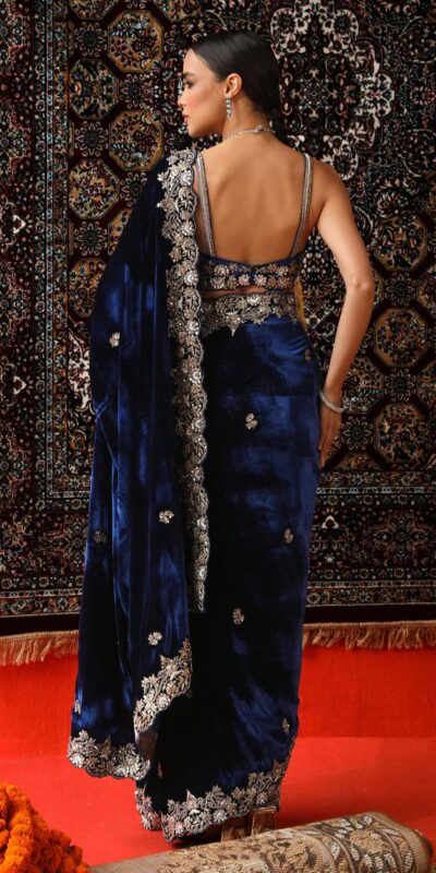 Navy Blue Viscose Velvet Thread Work Saree