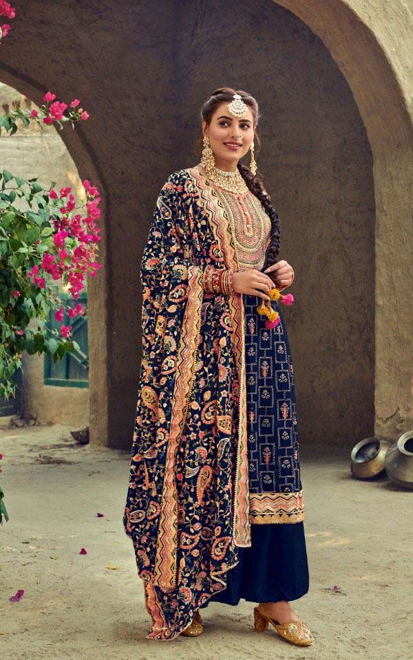 New Exclusive Blue Color Embroidery Work Sharara Suit