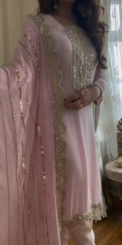 ZF 1604 Baby Pink Color Georgette Embroidery Diamond Handwork Salwar Suit Casual, Wedding, Party, Events Etc. Expected Delivery 4-6 Working Days 1949/-