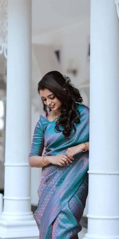 Nice Blue Color Soft Litchi Silk jacquard Work On All Over Saree