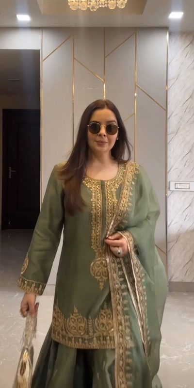 ZF 375 Green Color Chinnon Silk Embroidery Sequence Salwar Suit Casual, Wedding, Party, Events Etc. Expected Delivery 4-6 Working Days 2099/-