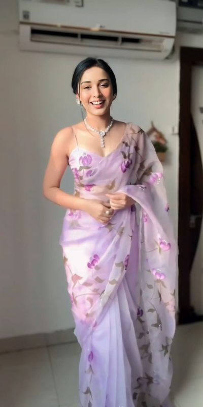 Nice Lavender Soft Organza Silk Pastel Color Flower Design Saree