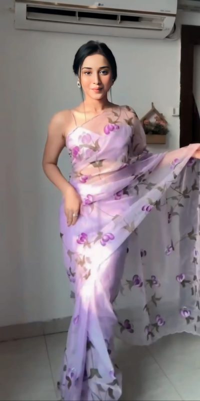 SC 258 Lavender Color Soft Organza Silk Pastel Color Flower Design Saree , Party Wear, Events, Festivals Expected Delivery 4-6 Working Days 1599/-