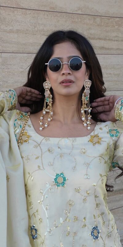 Off White Chinnon Embroidery Work Salwar Suit