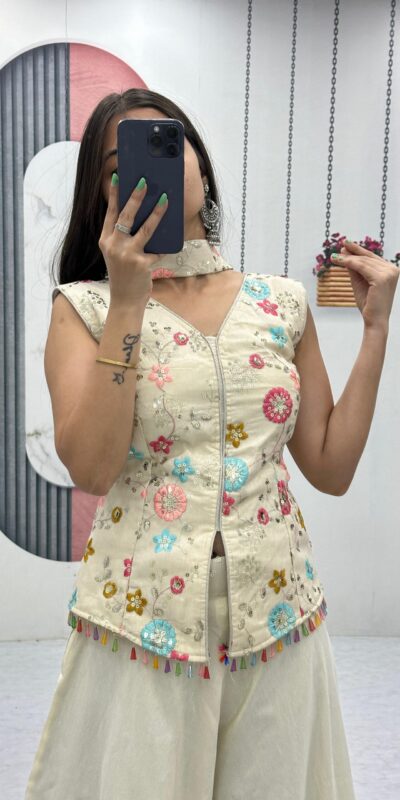 Off White Tissue Simmer Embroidery Work Salwar Suit