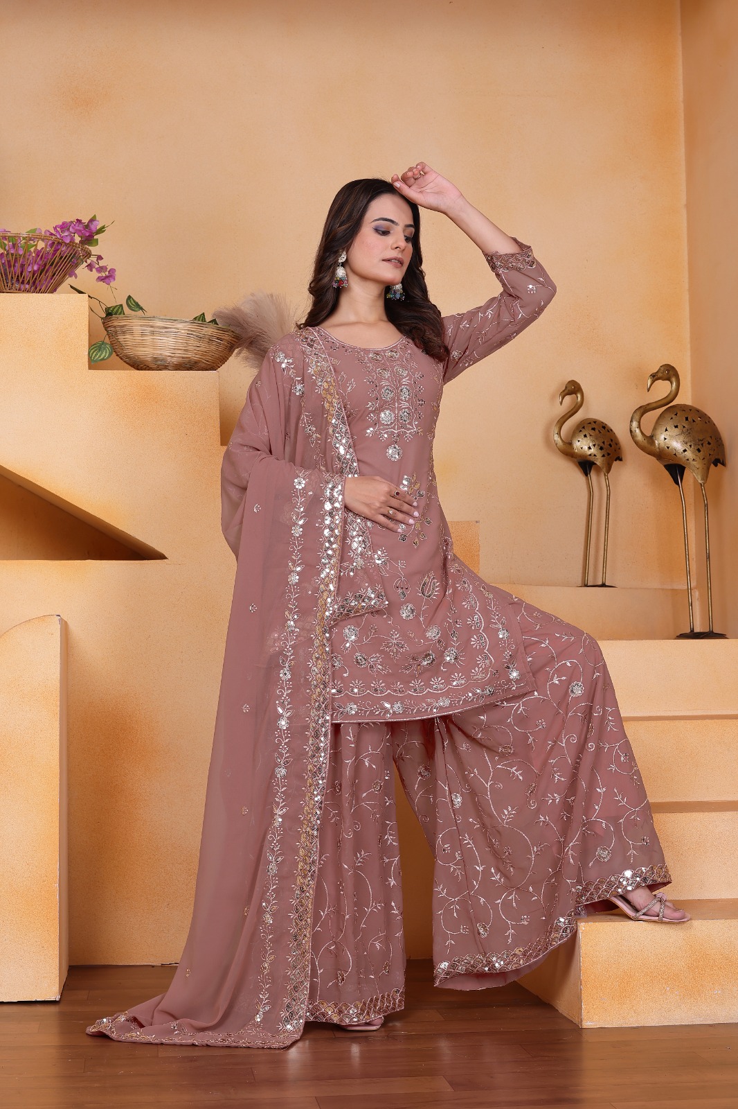 Onion Fox Georgette Embroidery Work Salwar Suit