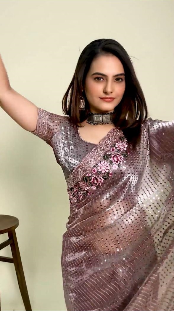 Saree Work : Heavy Embroidery Thread Zari with Coding & 3mm + 5mm Sequins Saree Work