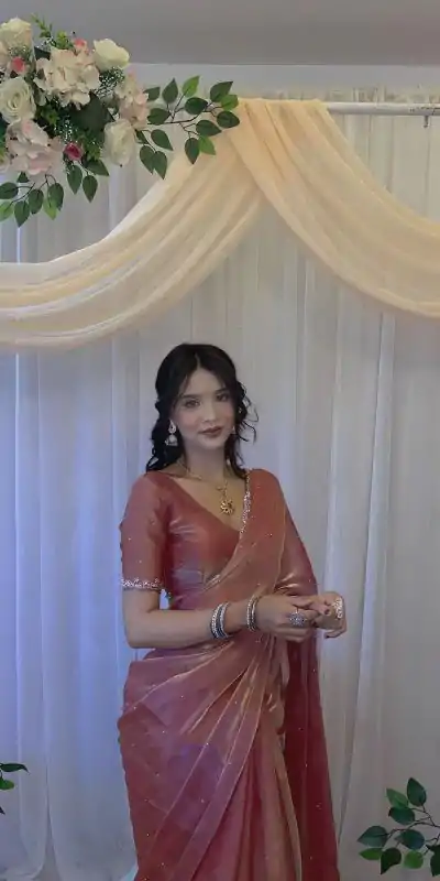 ST 477 Peach Color Burberry Blooming Embroidery Zari Saree Casual, Wedding, Party, Festive, Events Etc. Expected Delivery 4-6 Working Days @1949/-