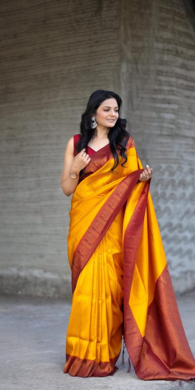 GK Mayurika Yellow Soft Silk Beautiful Rich Pallu All Over Saree Events Casual Wedding Festive . Expected Delivery 4-6 Working Days @1999/-