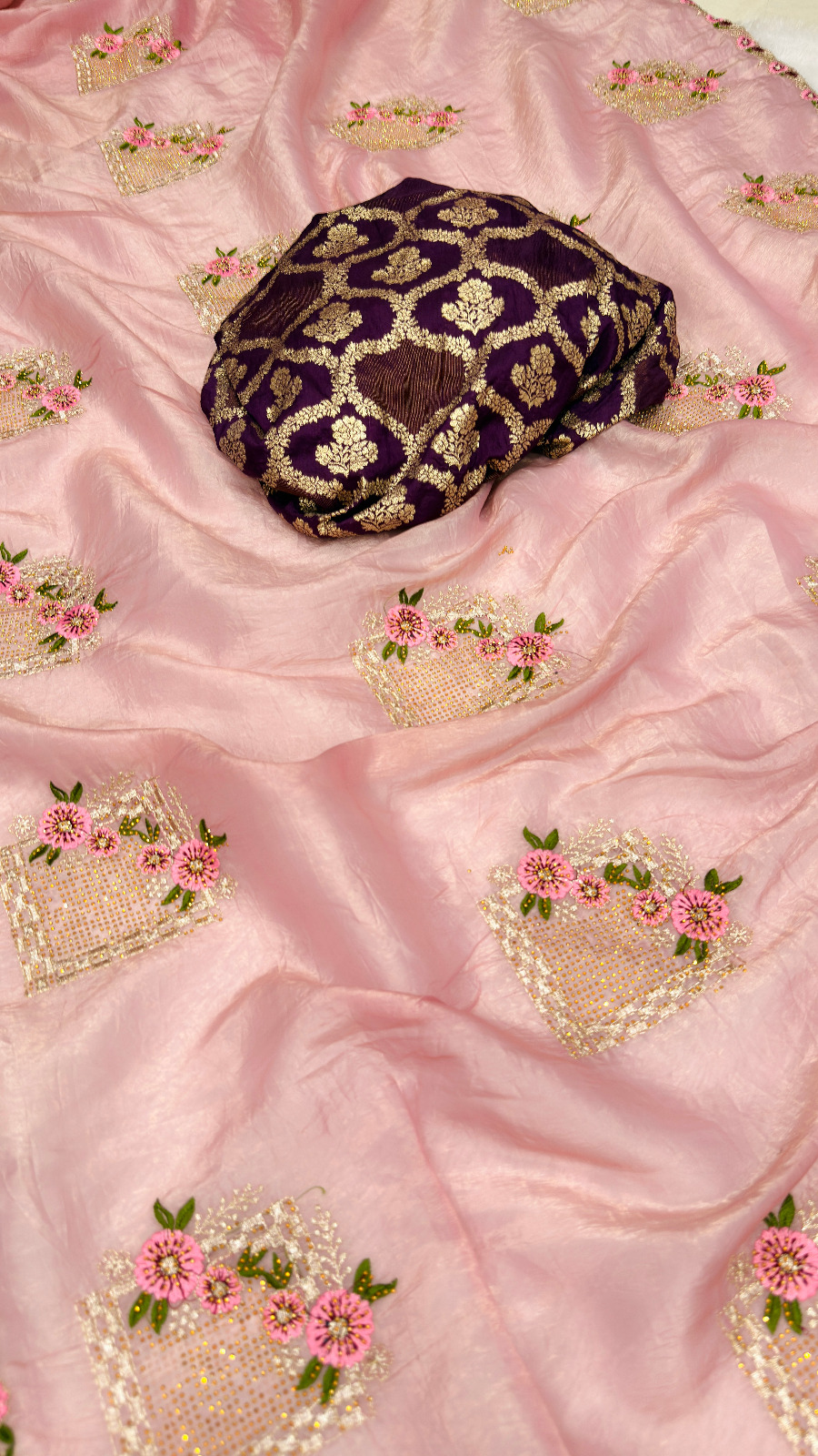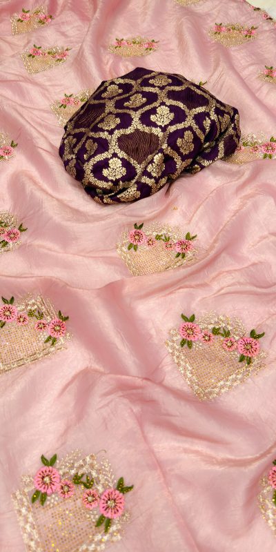 Saree Work : Beautiful Floral Embroidery all Over The Saree