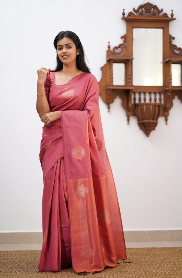 Peach Soft Lichi Silk Jacquard Saree