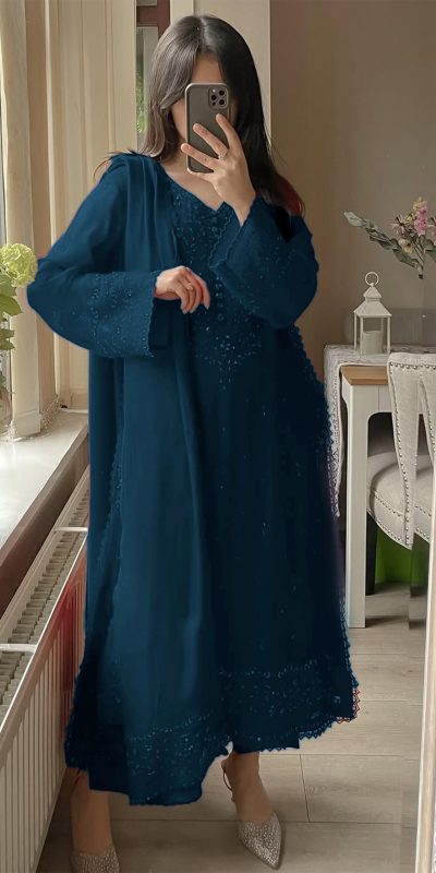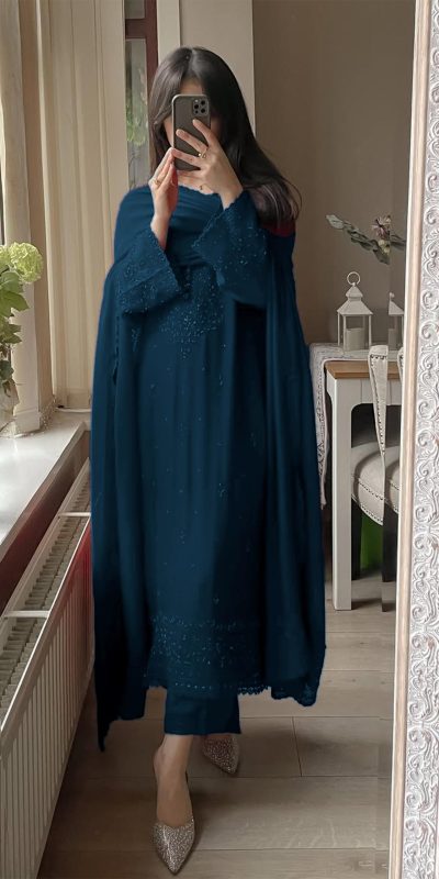 Peacock Blue Georgette Embroidery Work Salwar Suit