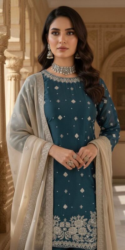 Peacock Blue Organza Silk Sequence Work Salwar Suit