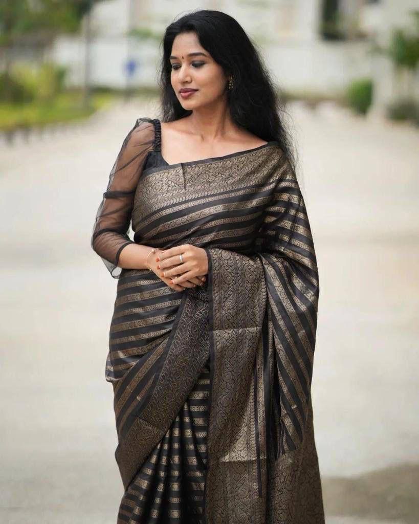 “The crepe saree’s unique texture adds a modern twist to traditional wear. It’s a versatile piece for both casual and formal events.”