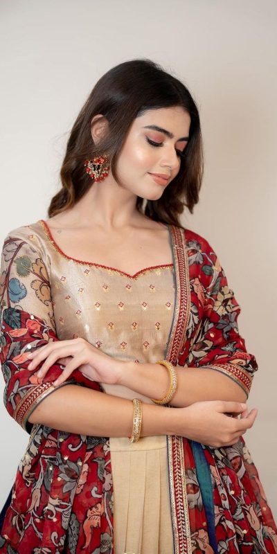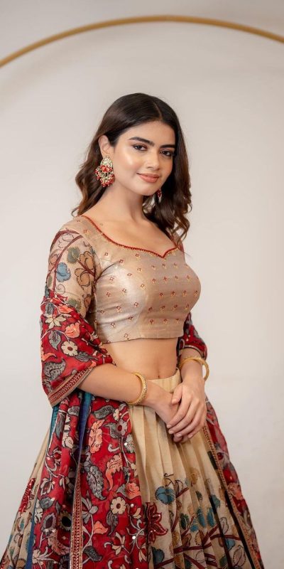 | Fabrics | Choli :- Chinon Work:- Kalamkari Print Inner:- Micro Cotton Lehenga:- Chinon Work:- Kalamkari Print Inner:- Micro Cotton Flair:- 3 Meter Dupatta:- Chinon Work:- Fancy Lace Border Size:- 2.30 meter |