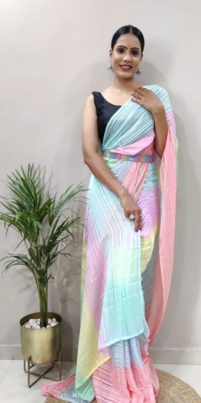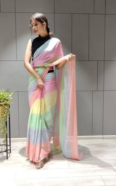 MS 441 Rainbow Color Chiffon Zari All Over Rainbow Shade Saree Casual, Party Wear, Wedding, Events, Etc. Expected Delivery 4-6 Working Days 1499/-