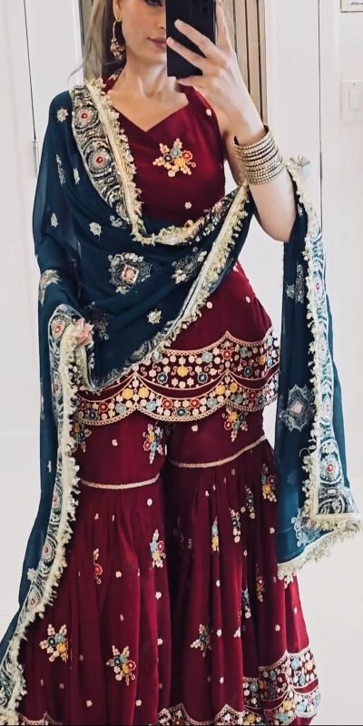 | Fabrics | Top Fabric : Heavy Faux Georgette With 5mm Embroidery Sequence Work With Full Sleeve Top Inner : Heavy Micro Cotton Top Length : 38-39 Inch Top Size. : Free Size Semi Stitched (FULLY STITCHED READY TO WEAR) Palazzo Fabrics : Heavy Faux Georgette With 5mm Embroidery Sequence With Fully Flair Palazzo inner : Heavy Micro Cotton Palazzo Length : 39-40 Inch (fully stitched) Dupatta Fabric : Heavy Georgette With and Embroidery Sequence Work And Lace Border |