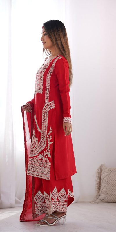 Dupatta Work : Pure Vichitra Silk Fabric With Embroidery Sequence And Dori Work Broader Fancy Lace Work Kurta Length:42 43 Inch Approx. Pent : Heavy Pure Vichitra Silk Fabric With Fancy Embroidery Sequence And Dori Work Bottom Lace Patta Work Size :Fully Stitched Ready To Wear |
