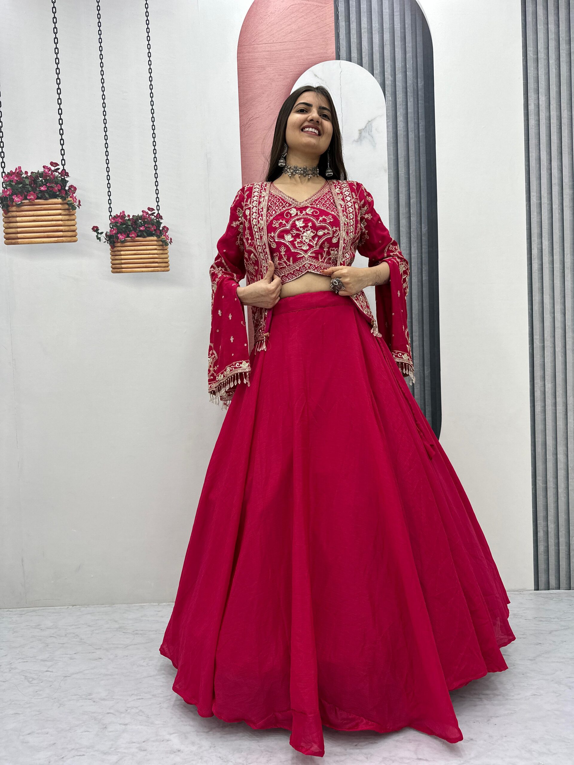 This lehenga choli is beautiful. The embroidery is so detailed, and the colors are so vibrant. The fabric is of high quality, and it drapes beautifully. I received many compliments when I wore it to a party.