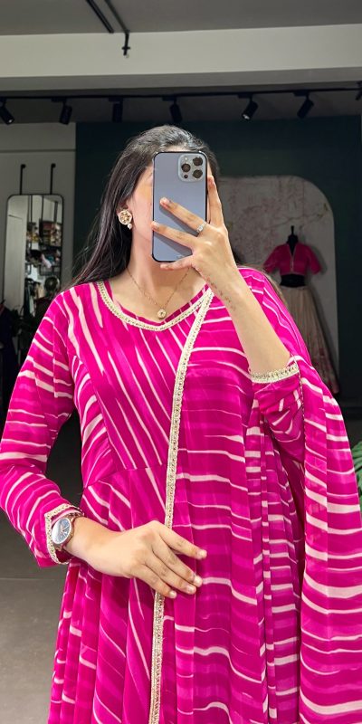 Gown Work : Leheriya Georgette With Lace Touch Up