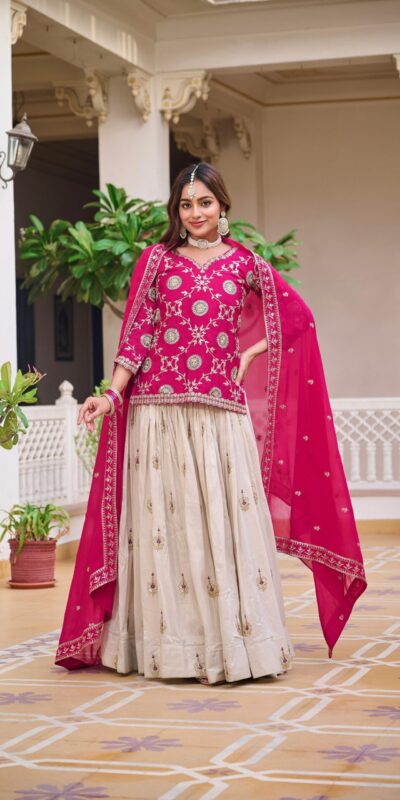 Pink Pure Chinon Embroidery Work Lehenga Choli