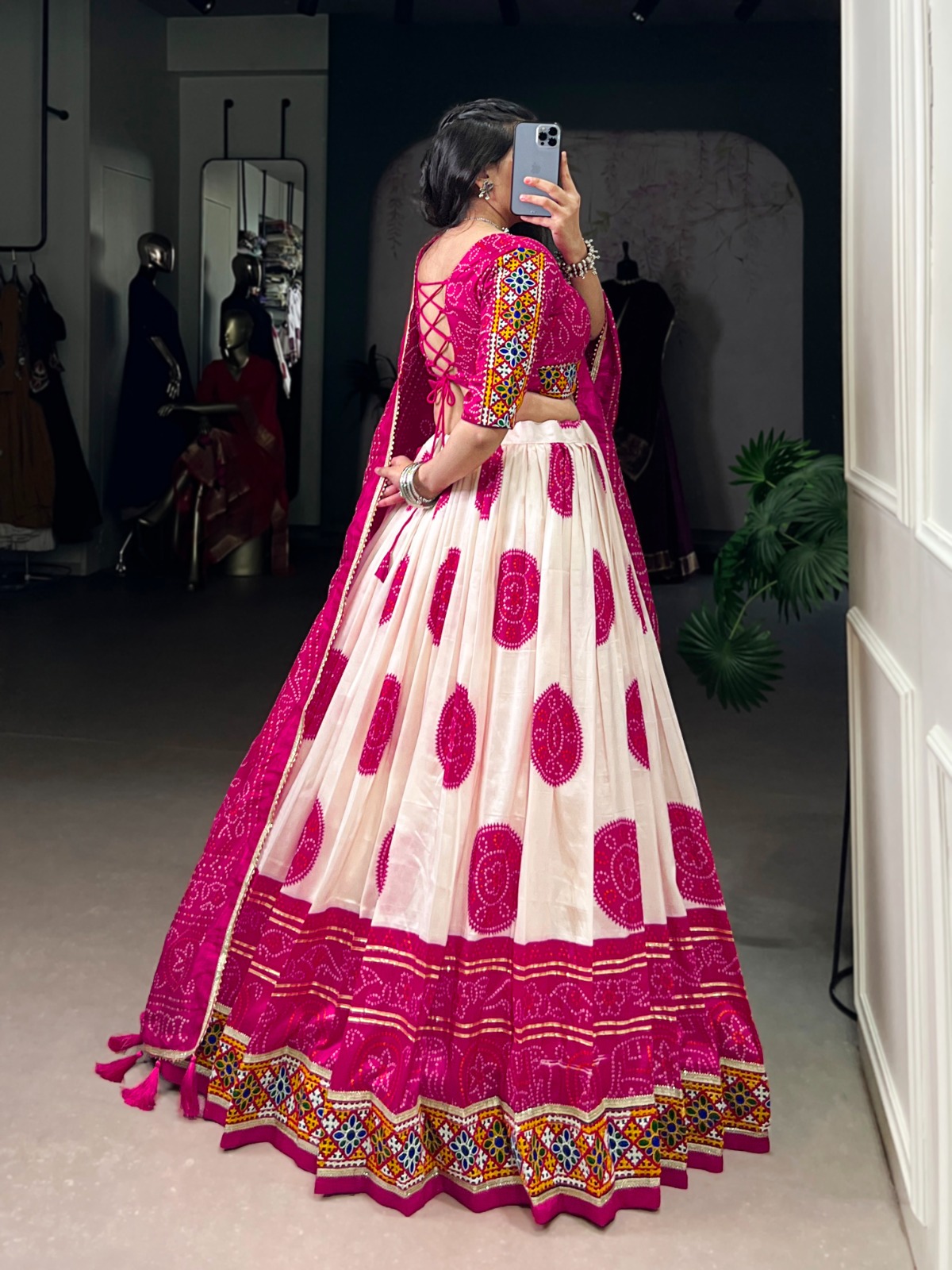 LNB 1736 Pink Color Tasar Silk Bandhej Print And Gamthi Work Lehenga Choli Wedding, Party, Festive, Events Etc. Delivery 4-6 Working Days Rs 3499 | Lehenga, Bollywood Lehenga, Creative Lehenga, Designer Lehenga, Embroidered Lehenga, Party Wear Lehenga