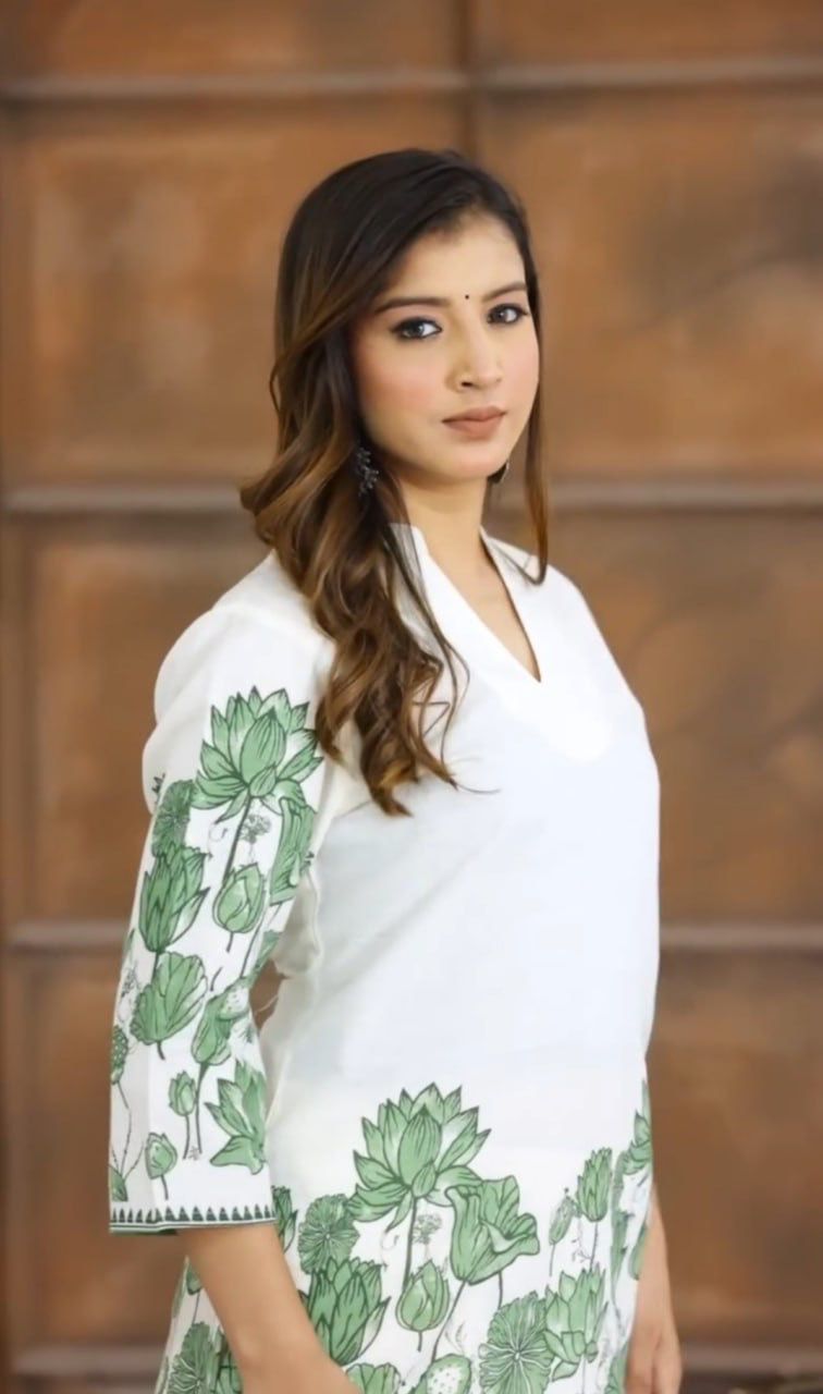 Top Fabric:-*Heavy Chinon with digital print Print:-*Digital print Inner:- butter crap Size:-*Free Size Semi Stitched Length : 47-48 inch Bottom Fabric:-*Heavy Chinon with digital print Length : 40-41 inch |
