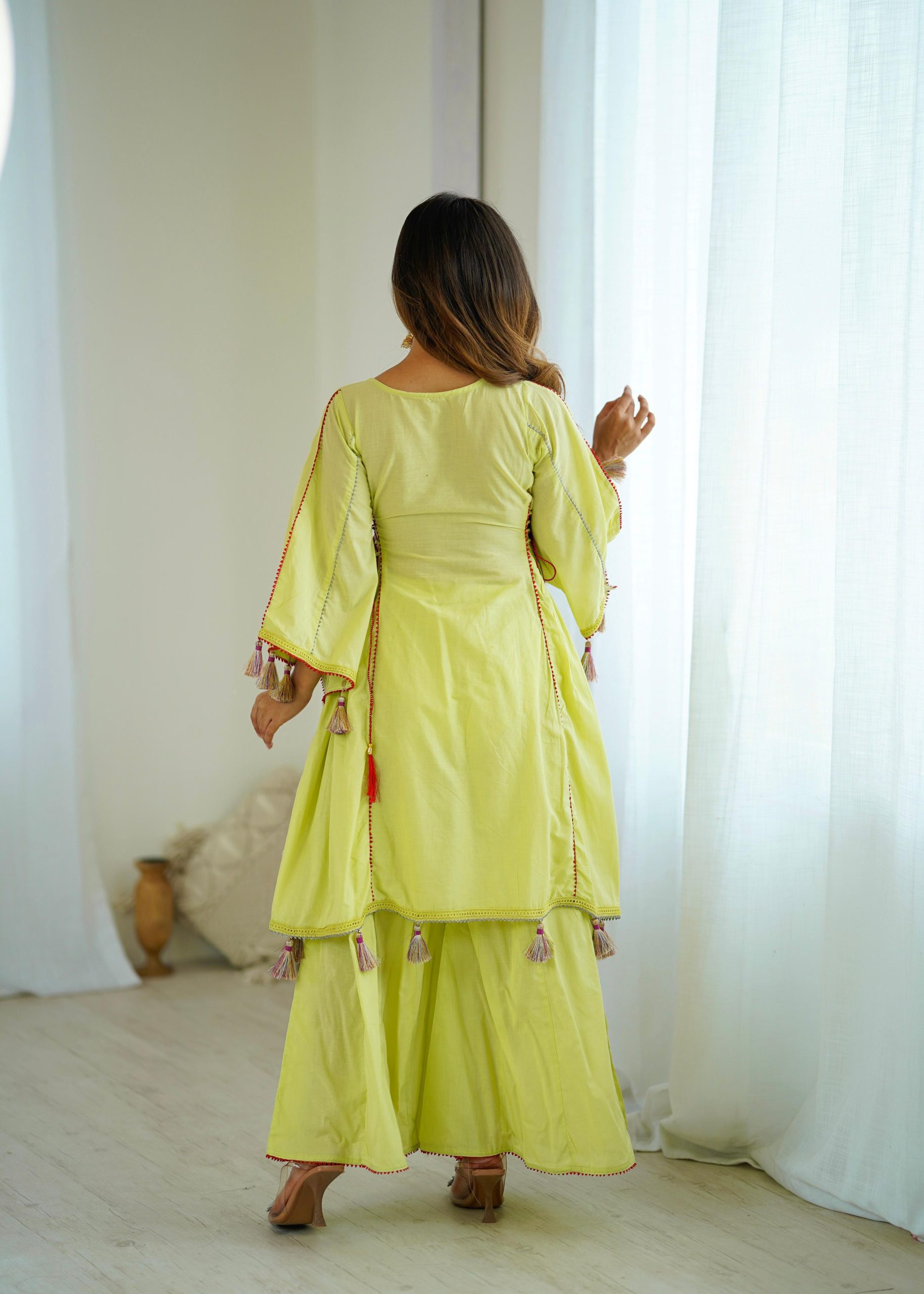 Pure Khadi Cotton With Embroidery Sequence Work With Real Mirror Work