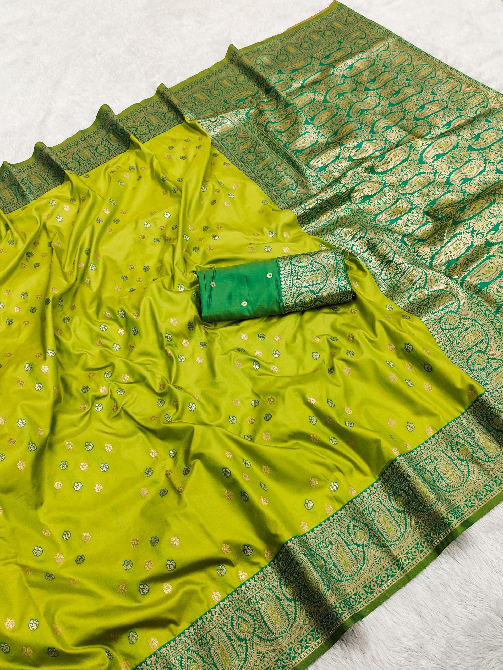 Pista Rich Banarasi Silk Zari Lace Work Saree