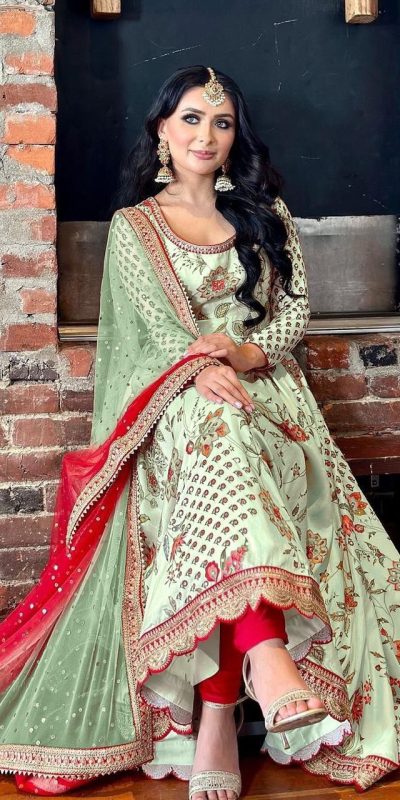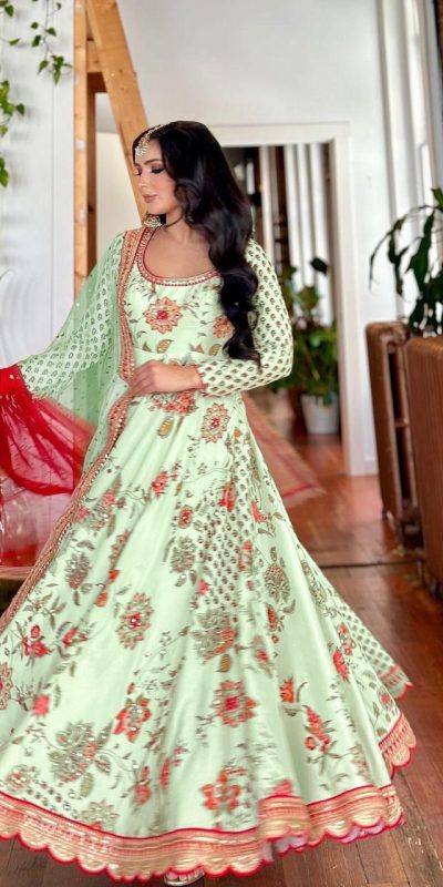 | Fabrics | Gown :- Heavy Faux Georgette With Heavy Embroidery Sequence Work With Diamond Hand Work Full Sleeve
