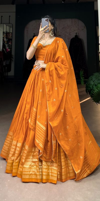 LNB 1906 Orange Color Pure Chanderi Plain With Zari Weaving Work Border Lehenga Choli Wedding, Party, Festive, Events Etc. Delivery 4-6 Working Days Rs 1999