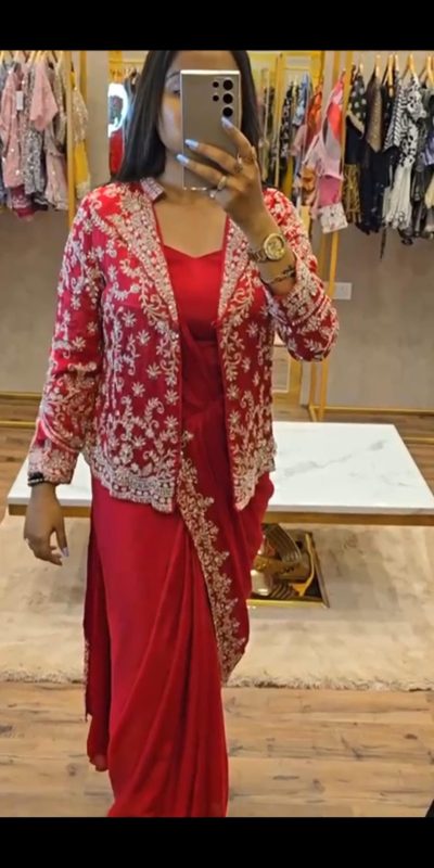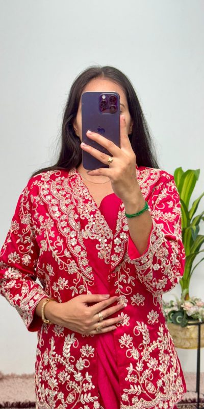 ST 1054 Pink Color Chinon Embroidery Work Koti And Saree Casual, Wedding, Party, Festive, Events Etc. Expected Delivery 4-6 Working Days @2399/-