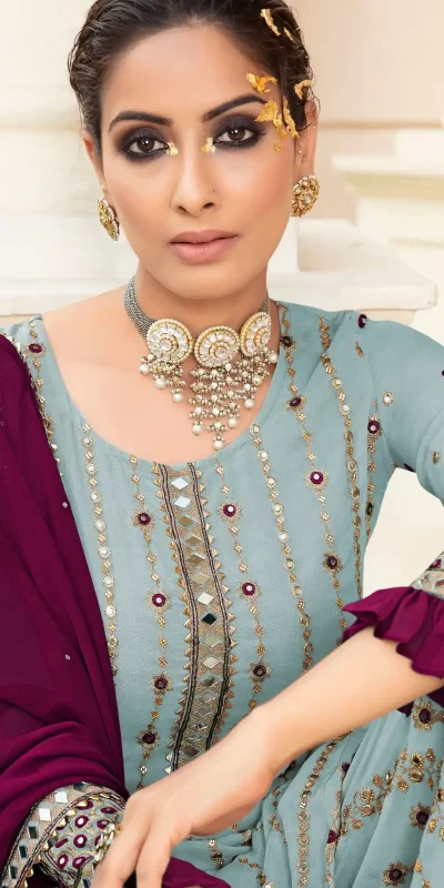 AD 134 Purple Color Heavy Pure Viscose Velvet Embroidery Sharara Suit Wedding, Party, Festive, Events Etc. Expected Delivery 4-6 Working Days @2099/-
