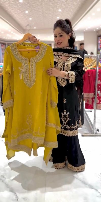 Work : Heavy With Embroidery Sequence Work Full Sleeve Front and back both side work Top Length : 30-40 Inch Palazzo Fabrics : Heavy Faux Georgette With Heavy Embroidery Sequence Work With Elastic Work : Embroidery Sequence Work fully stitched Palazzo Length : 40-41 Inch Dupatta Fabric : Organza silk Dupatta Work. : Heavy Faux Georgette With Embroidery Sequence Work With Lace Border |