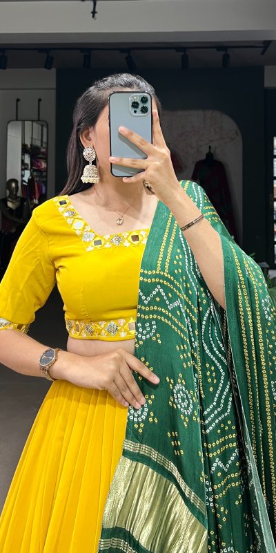 Pretty Yellow Color Georgette Sequins Embroidery Lehenga Choli