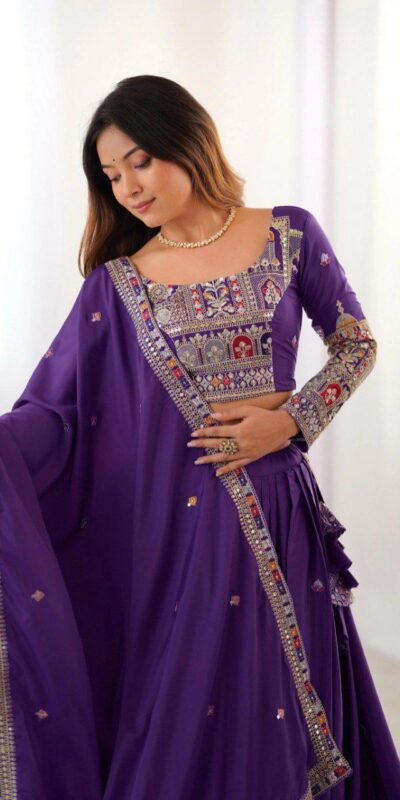 Purple Chinon Silk Embroidery Work Lehenga Choli